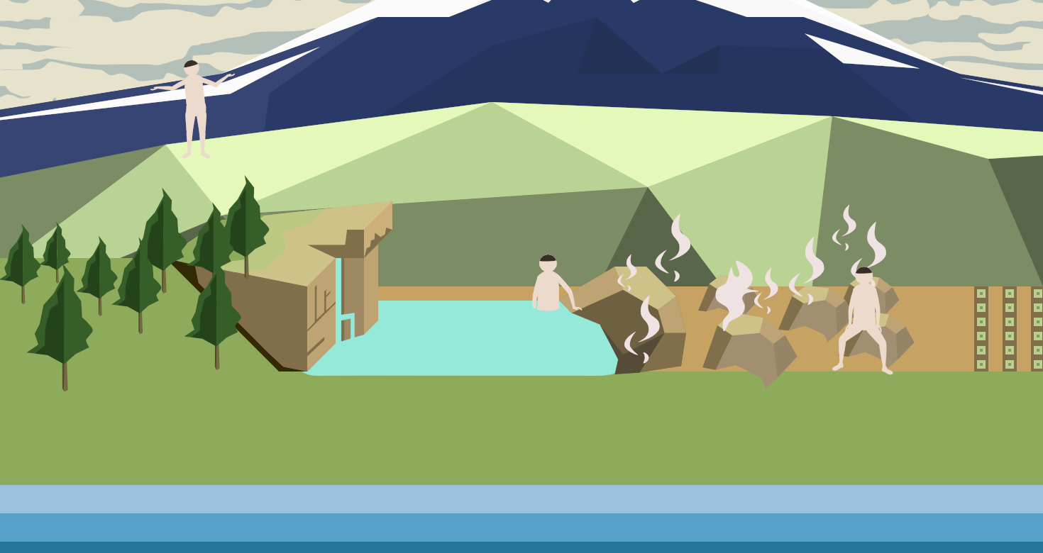 生物の進化の過程で陸に上がった生物にとって、陸上は海の中の生活より過酷な環境でした。水・湯を浴びることはカラダを清めるだけでなく、陸上の環境からカラダを解放して自然治癒をうながしてもくれます。特に温泉地の温泉成分を含んだお湯には自然治癒を活性する化学薬理作用があります。ご自宅でも適温のお湯に浸かることは温熱作用や物理作用があります。